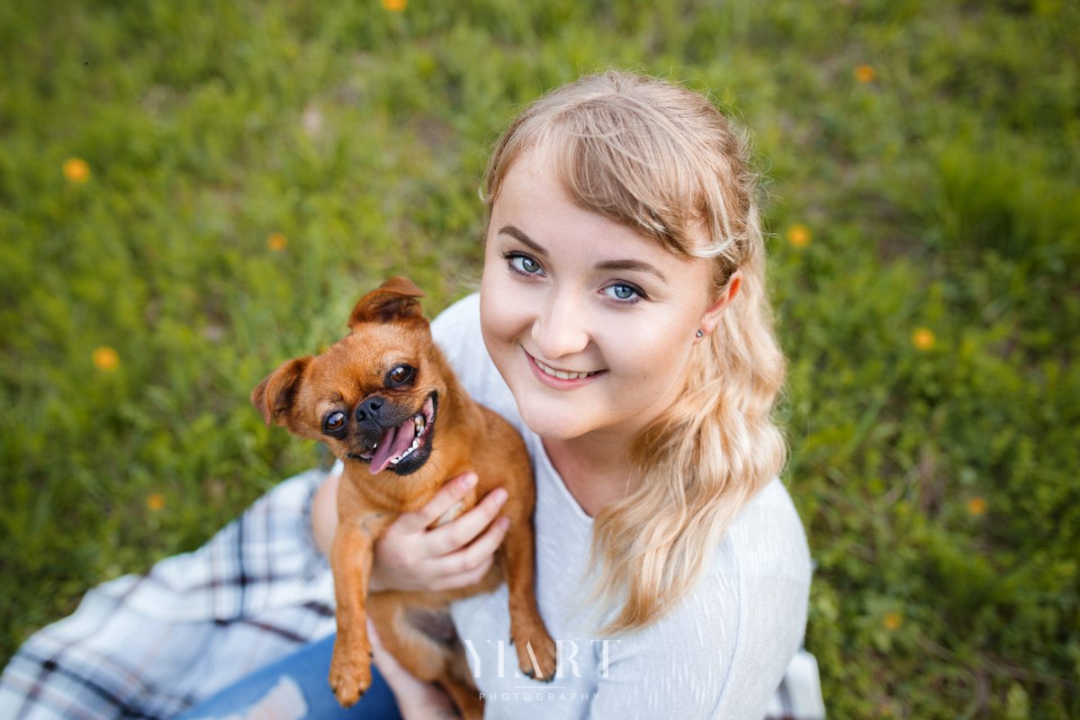 Für mich ergab sich bei diesem Shooting noch eine ganz andere Herausforderung: Zwischen den unterschiedlichsten Hunden, die ich bisher fotografiert habe, war Maja das bisher kleinste Model. In solchen Augenblicken, sehe ich meine Locations plötzlich mit ganz neuen Augen. Damit ich nicht immer platt wie eine Flunder auf dem Boden liegen muss, setzten wir Maja kurzerhand auf einen alten Baumstamm. Später stellte sich freundlicherweise noch ein Baumstumpf zur Verfügung, auf dem sie über dem blumigen Waldboden thronen durfte. Ganz nach ihrem Geschmack! Licht aus, Spot an, alle Aufmerksamkeit auf mich! Auch bei den gemeinsamen Kuschelbildern strahlten die Beiden um die Wette.